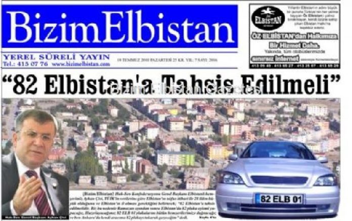 Biz bu nedenle Ramazan ayından sonra Elbistan’da 82 plaka eylemi yapacağız. Hazırlayacağımız 82 ELB 01 plakalarını bütün hemşerilerimize dağıtacağız ve o gün 82 günü olacak. Ve ben Ankara’da kendi aracıma 82 plakayı takarak gezeceğim ve 82 plakayı Elbistan’a tescilleyeceğiz. Biz kendi haklarımıza ve hukukumuza sahip çıkmazsak, bunu talep etmezsek sadece nasihat dinleriz, bir zamanlar olduğu gibi sırtımızı çevirip arkamıza, ‘Elbistan il oldu’ yazarlar. Bunlarda sadece bizi güldüren hatıralar olarak kalır.