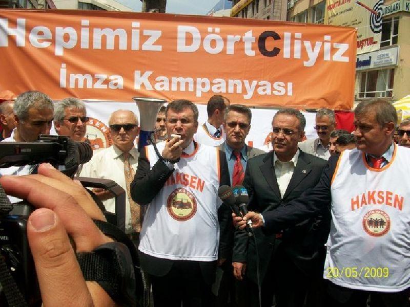 “Nitekim, TÜİK’te bu statüden emekli olan pek çok personel olmuştur. Hiçbir sendikanın farkında olmadığı bu personelin varlığından ancak Anayasa Mahkemesine yapılan başvuru sonucu haberdar olmuşlardır. 2008 yılındaki kuruluşumuzun hemen ardından durum tespiti yaparak mücadelemizi başlattık. Elbette, 4/C’nin bir kölelik düzeni olduğu tekel işçilerinin eylemi sonucu anlaşılmıştır. Ancak, henüz işçilerimiz 4/C nin ne olduğunu bilmezken, TÜİK çalışanı 4/C’li Sabahattin Gürler adına 2008 yılında sendika üyeliği hakkı için, 2009 yılında da kıdem tazminatı ödenmesi için HAKSEN tarafından dava açılmıştır. Sendika üyeliği hakkı alınmasının ardından, Danıştay İdari Dava Daireleri Kurulu kıdem tazminatı ödenmesine ilişkin itirazımızı kabul ederek, 657 sayılı Yasanın 4/C maddesi ile TÜİK Kanununun geçici personel çalıştırılmasına ilişkin maddesinin iptali için Anayasa Mahkemesine başvuru yapmıştır. İki yıl önce başlattığımız hukuk mücadelemizden haberi dahi olmayan Tek Gıda-İş sendikası HAKSEN’in hukuk mücadelesini sahiplenerek popülizm yapmaktadır. Tek Gıda-İş Sendikası tarafı olmadığı bir davaya sendikamızı yok sayarak müdahale etmekte, tekel işçilerine umut pompalamakta ve Anayasa mahkemesine yaptığı başvurular ile süreci yönetmeye çalışmaktadır. Bu nedenle, herkesi emeğimize saygı göstermeye davet ediyoruz.”