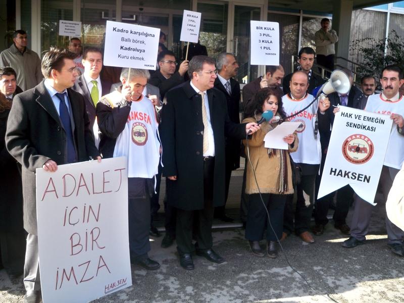 Bu sırada HAKSEN Genel Başkanı Ayhan Çivi de, “Yumurta atacak kadar zengin değiliz, Başbakanın tavsiyesine uyuyoruz. Ancak öğle yemeği yiyebiliyoruz” şeklinde konuştu. Eylem olaysız sona erdi.
