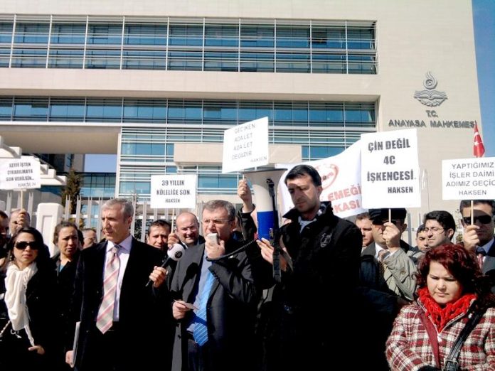 Çivi, “Danıştay 2. Dairesince yürütmenin durdurulmasının reddi nedeniyle Danıştay İdari Dava Daireleri Kuruluna yaptığımız itiraz sonucu Danıştay İdari Dava Daireleri Kurulunun 24 Mart 2010 tarihinde aldığı kararla, 657 sayılı Yasanın 4/C maddesinin Anayasamızın 7 maddesine aykırı olduğu gerekçesiyle iptali istemiyle Anayasa Mahkemesine başvuru yapmıştır” dedi. Çivi, Anayasa Mahkemesi’nin 20 Mayıs 2010 tarihindeki ilk incelemesinde 4/C iptal başvurusunu esastan inceleme kararı aldığını ve 10 aydan beri söz konusu incelemenin devam ettiğini vurguladı.