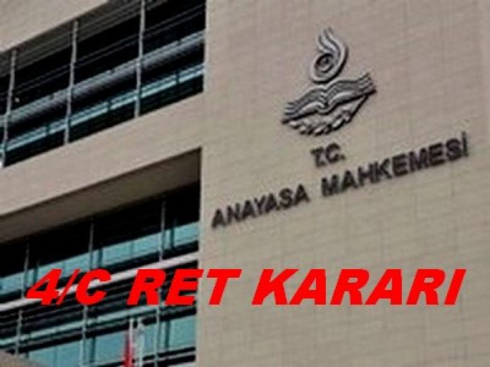 Danıştay 2.Dairesince yürütmenin durdurulması talebimizin reddi üzerine Danıştay İdari Dava Daireleri Kuruluna yaptığımız itiraz sonucu, kurul 4/C’nin Anayasamızın 7 maddesine aykırı olduğuna karar vererek iptali için Anayasa Mahkemesine başvurmuştur.