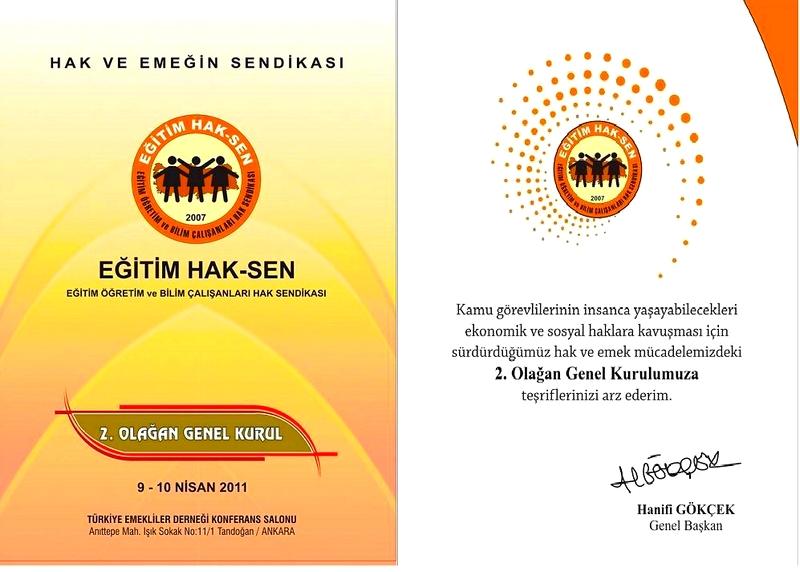 Eğitim Hak-Sen’in 9-10 Nisan 2011 tarihlerinde yapılacak olan 2.Olağan Genel Kuruluna HakSen’e bağlı tüm sendikaların yönetici, temsilci ve üyelerinin davetli olduğunu belirten Eğitim Hak-Sen Genel Başkanı Hanifi Gökçek, genel kurulun hak ve emek mücadelesi için bayram olacağını söyledi.