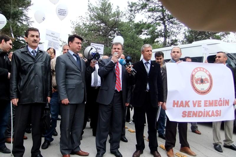 HAKSEN Meteoroloji Genel Müdürlüğü önünde bir basın açıklaması gerçekleştirerek çalışanların ek ödemelerinin ödenmesini talep etti. Grup adına basın açıklamasını okuyan HAKSEN Başkanı Çivi, geçen aydan kalan ek ödemelerin peyderpey olmak üzere 11 Nisan’a kadar tüm personele yapıldığını ancak 15 Nisan’da yapılması gereken ek ödemelerin 4/B’li personel haricinde hiçkimseye yapılmadığını ifade ederek, “Yapılması gereken toplam ek ödeme tutarı 1 milyon 130 bin TL’dir. Devletin kendi memuruna bu tutarı ödeyememesi düşündürücüdür” diye konuştu.