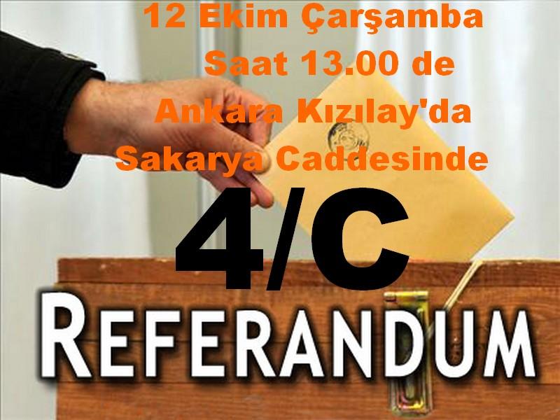 657 SAYILI YASANIN 4/C MADDESİ UYARINCA BAKANLAR KURULU KARARLARI İLE “KÖLELİK” STATÜSÜNDE ÇALIŞTIRILAN GEÇİCİ MEMURLARIN YAŞADIKLARINA BİR KEZ DAHA KAMUOYUNUN DİKKATİNİ ÇEKMEK, UĞRADIKLARI HAKSIZLIKLARIN ORTADAN KALDIRILMASI İÇİN YETKİLİ MAKAMLARI GÖREVE ÇAĞIRMAK, KADRO TALEBİMİZİ BU KEZ DE HALKA SORMAK İÇİN “4/C REFERANDUMU” YAPIYORUZ.