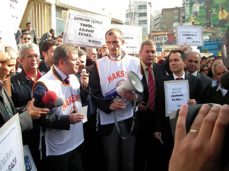 Doğalgaza yapılan zamları protesto etmek için bugün saat 13.00 de Ankara Maltepe’de bulunan Doğalgaz Satış binası önünde biraraya gelen HAKSEN üyeleri ‘Memuru Bu Hale Getirenler Utansın’, ‘Kaşıkla Verdiler Kepçeyle Aldılar’ sloganı attılar. Kitlesel açıklamayı yapan Genel Başkan Ayhan ÇİVİ, krizin ayak seslerinin zamlarla geldiğini , faturanın da memura, emekliye,işçiye, esnafa, çiftçiye yani emeğiyle geçinmenlere kesildiğini söyledi. Memur maaşlarına 2008 yılında kümülatif yüzde 6 zam yapılırken, doğalgaza yüzde 66 zam yapıldığının altını çizen Ayhan Çivi, bu gidişle 3 oda 1 salon yerine memurun kışı ısınabilmek için tek odada geçireceğini belirtti.