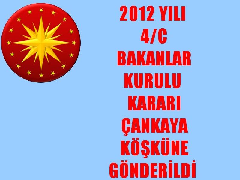 Özelleştirme nedeniyle kamu kurum ve kuruluşlarına nakledilen 4/C personelin ve Türkiye İstatistik Kurumunda çalışan 4/C personelin 2012 yılındaki ücret ve diğer çalışma koşullarını belirleyecek olan 2012 yılı Bakanlar Kurulu Kararlarının imzalarının tamamlanmasının ardından bugün onay için Cumhurbaşkanlığına gönderildi.