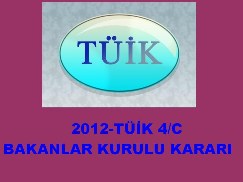 Her yıl olduğu gibi, 2012 TÜİK 4/C Bakanlar Kurulu kararını yayımlayarak, kararda yer alan düzenlemelere ilişkin olarak personeli bilgilendirmeyi görev biliyoruz.