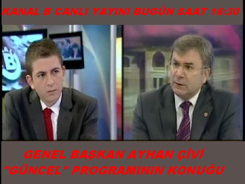 Haksen Genel Başkanı Ayhan Çivi, bugün (6 Mayıs 2013) Kanal B televizyonunda canlı olarak yayımlanan GÜNCEL programına katılacaktır.