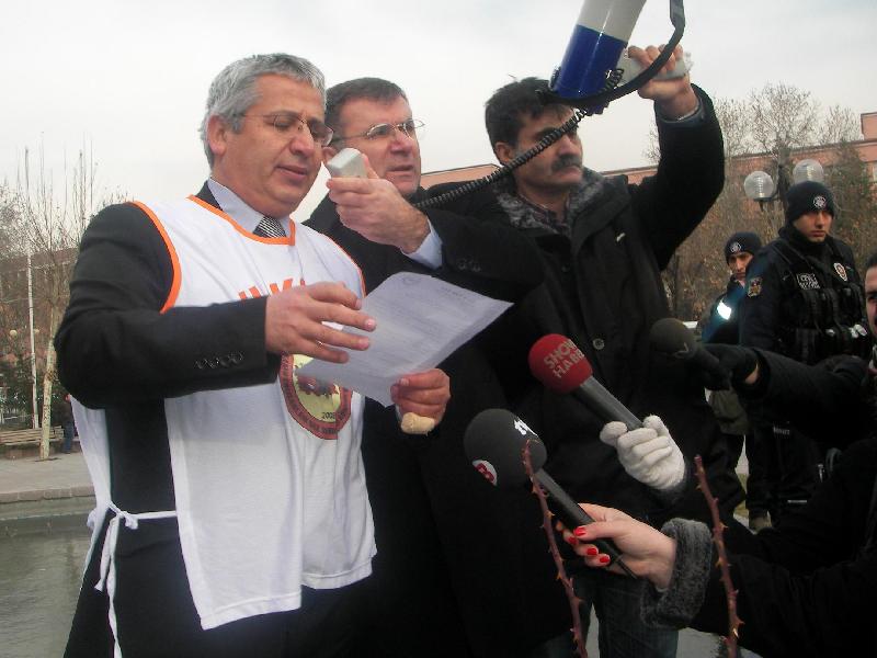 Ankara Bölge İdare Mahkemesinde Zabıt Katibi olarak görev yapan Büro Hak-Sen Hukuk Sekreteri Cevdet Telefoncu yaptığı açıklamaya yargı çalışanları da sloganlarla katıldılar.